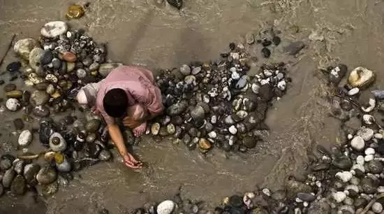 2006年之前,在和田玉龙喀什河畔,因挖到美玉而大发一笔的故事每天都在流传,一夜暴富的神话吸引了成千上万的人常年在河床上挖玉、倒玉、加工玉。大型挖掘机将河床一片片翻开,所有的沙土被筛了无数遍,指甲盖大小的籽玉也休想漏网。