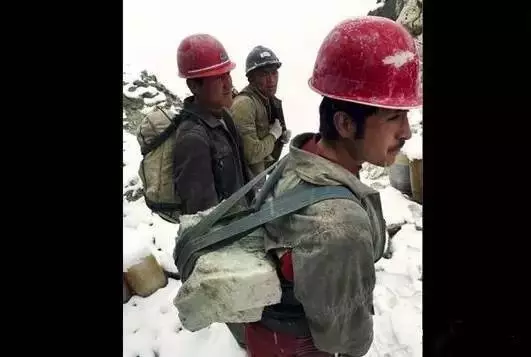 在崎岖陡峭的昆仑山上,人力是运送玉料的唯一工具。如果稍有闪失,造成大块玉料的破碎,玉料便会身价暴跌,采玉人的个人声誉也会一落千丈。