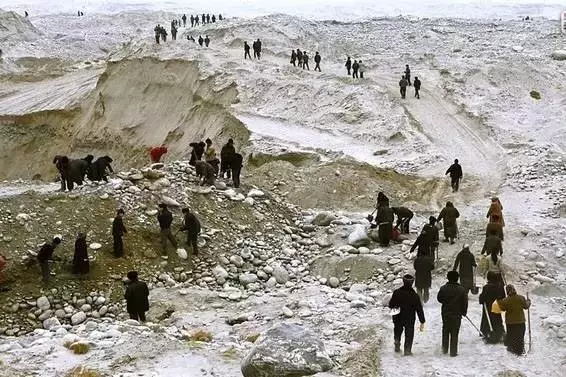 到了2005年、2006年,出现上百万人同时在河床挖玉,3000台大型挖掘机同时工作的场面。