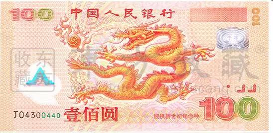 2000年中国人民银行生肖纪念龙钞,短时间内由面值涨幅46倍