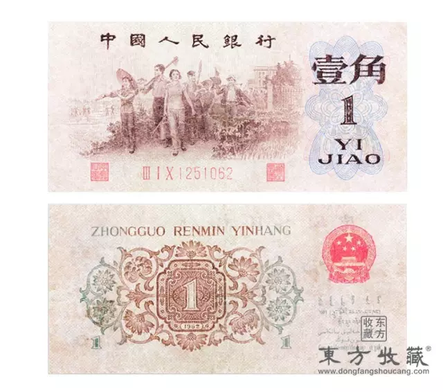 该币是1962年版的1角券。由于背面的绿色在流通中极易与同年代发行的2角券(长江大桥)相混淆,所以,早在1967年就退出流通领域。1994年以来,该币在收藏市场一路走高,成为第三套人民币收藏风向标。其中,冠号最后三位数是“888”的纸币的市场行情更是高达15万元左右,相当于一辆中级轿车的价格。