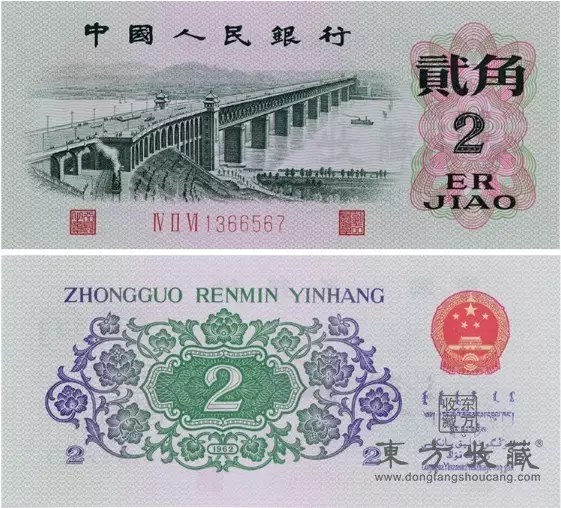 该币是1962年版2角券,1996年末停止流通。1962年版2角券有红3字凸版、红3字平板、红2字平版之分,由于凸版2角券是较早的流通品种,也具备印制量小,存世量少的特点。并且价格相对较低,适于百姓大众收藏,但预计未来上升潜力较大。