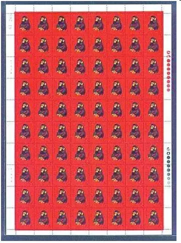 庚申年猴票发行时面值仅为每张0.08元,截止到2009年底,猴票的价格已经涨至每张5000元,2010年,其市场价已破万元。目前,市场价已经达到每张1.5万元, 相比8分钱的面值升值了18万倍。2011年80枚整版猴票更是拍出150万元的天价。