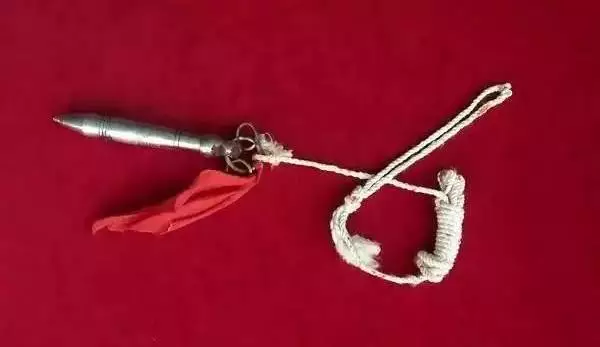 套索,不知始于何时,亦并非兵器,临阵时用者绝鲜,盖一寻常之绵绳,两端结作锤形,长约一丈二尺,搆造至为简单,用法亦止九势,为一种暗器,似飞镖袖箭之一类也;若用为架格攻击,则非所宜。