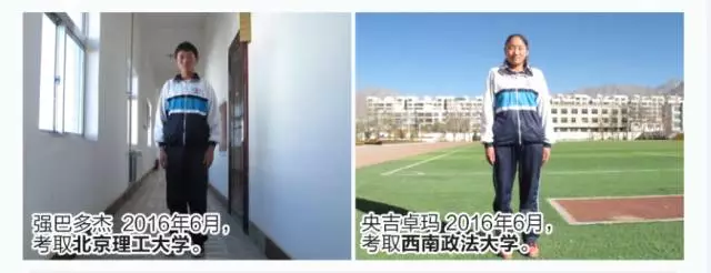 2016年,桑吉卓玛,成功考入西南政法大学;强巴多杰,考入北京理工大学!