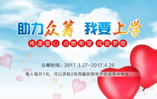 每人每月1元,就可以资助2名西藏贫困学子完成高中学业。