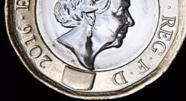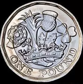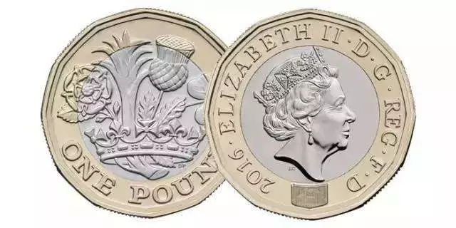 该硬币比旧款略大,但更薄、更轻。在女王头像下方,有块五边形像个小盾牌的图案,是一道“hologram-like”(雷射立体影像)图案,在灯光下左右翻动硬币,从不同角度可分别看到数字“1”或英镑符号。