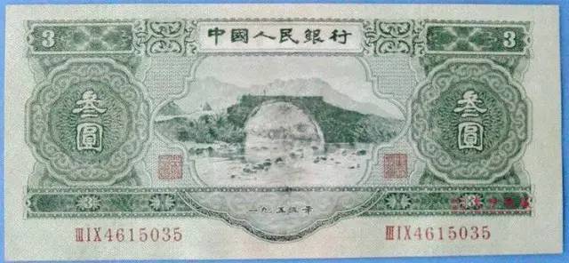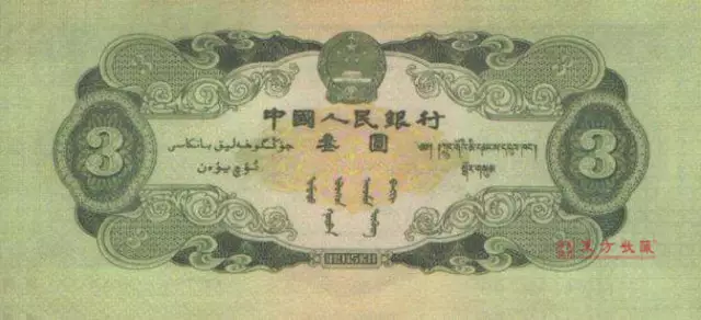 后来中苏关系恶化,中国人民银行于1964年停止并收回3元人民币,因此只发行了9年,其存世量也极少。