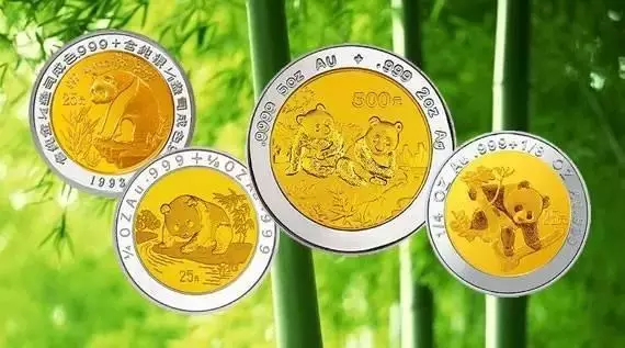 以往发行的双金属熊猫纪念币图案