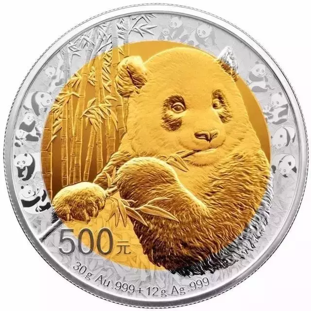 背面图案则各有不同:30克金+12克银圆形双金属纪念币背面图案为食竹大熊猫及竹林图案,配以部分熊猫金币主景以及竹叶底纹组合设计,最大发行量6000枚。