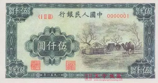 第一套人民币除了牧马钞这样可遇不可求的品种外,五千元面值的蒙古钞也是很珍贵的品种算得上第一套人民币中的“二把手”了。不仅市场价格高达数十万,而且常年保持稳定上升。