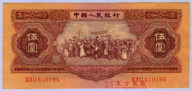 第二套五元钞以红色为基调,并出现了少有的实心五角星水印,其花纹和图景的设计都非常符合当时的中国特色和时代风格。正面图案是各族人民大团结,背面印有汉、藏、蒙、维四族文字,造型精美异常,备受市场喜爱。