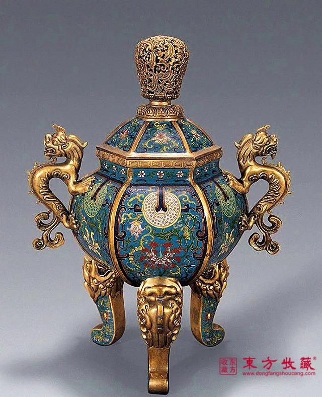 太和殿宝座前左右两侧的宝象、甪端、仙鹤、香筒、熏炉均为金属胎掐丝珐琅制品 600年的朝代更迭,历代帝王赋予了景泰蓝帝王的气质与形貌。他们将大型器物,包括驱邪避灾的瑞兽、威武庄严的炉鼎、吉祥平安的瓶尊......陈列到皇家主持国事、案牍勤公的地方,让景泰蓝拥有了崇高荣誉和地位! 正应了收藏界的那句话,“一件景泰蓝,十件官窑器”! 东方收藏您身边的投资收藏专家 典藏专线:400-821-0007