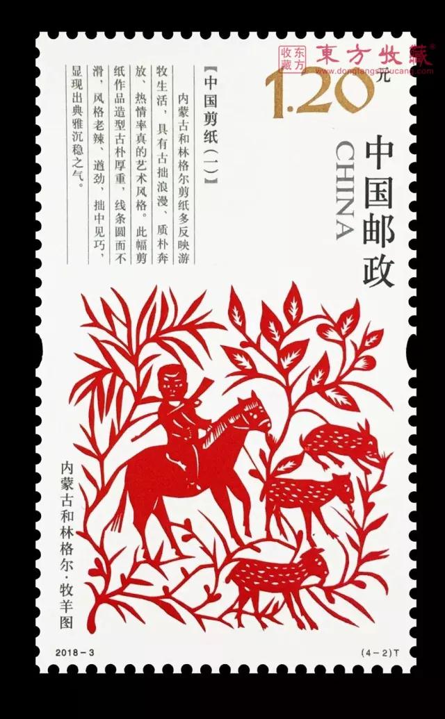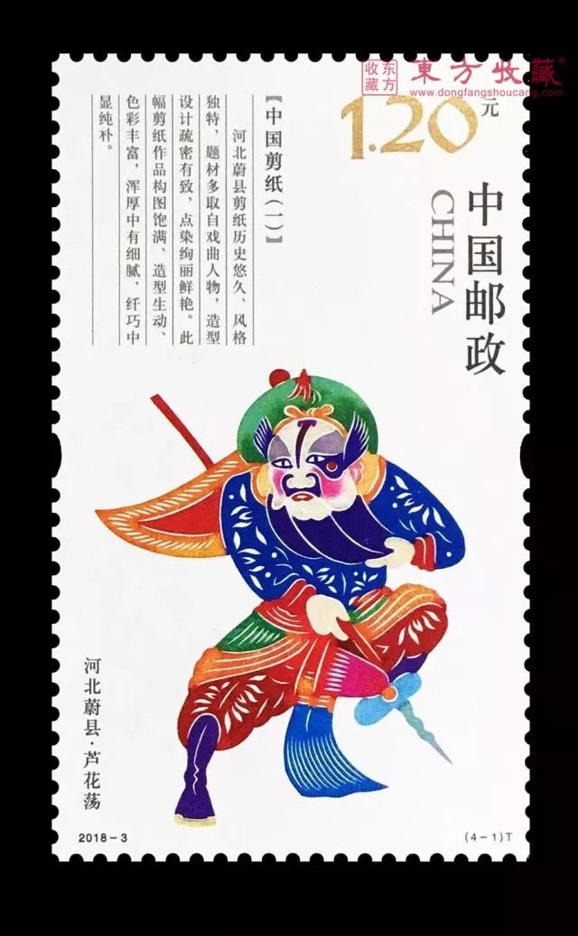 对于广大集邮爱好者来说,什么样的邮票才是值得收藏的呢?说白了,就是既要图样精美,又要内涵丰富,同时最重要的,还要贴近我们老百姓的生活,文化趣味性浓郁,这样的邮票才是好邮票! 当代邮票,要说搞投资、发大财,难度比较大,但说各位藏友对邮票文化的热爱,那是实实在在的。这不,明天即将发行的这套《中国剪纸(一)》邮票,极具特色的版式,民俗气息浓郁的设计,绝对满足你对剪纸的全部幻想! 扫描二维码 直接预定 邮票鉴赏 中国邮政定于2018年1月24日发行这一套《中国剪纸(一)》特种邮票,全套4枚,分别呈现了河北蔚县的《芦花荡》、内蒙古和林格尔的《牧羊图》、陕西旬邑的《江娃拉马梅香骑》、山西新绛的《小别母》这四幅经典剪纸艺术作品。 中国剪纸(一)邮票 有意思的是,这套邮票采用了罕见的“30×50”竖长型版式,除了下面的剪纸画,上面还配了讲述文字,简述了四种剪纸的风格和特点,就像百科全书一样,具有很高的鉴赏价值。 中国传统的剪纸艺术,是广大劳动人民在生产生活中创造出来的艺术,历史悠久,遍布大江南北,和我们的生活息息相关、影响深远,是我国优秀的非物质文化遗产之一。 这套剪纸题材的特种邮票,通过选取不同地域经典的剪纸图案,呈现了各地民居、服饰、器物、祭祀等生活意趣的不同形态,是中国多民族文化特征的最好体现,内涵和底蕴非常深厚。 邮票画面用简单的白底色,衬托五彩鲜艳、造型丰富的剪纸,原汁原味地还原了剪纸的传统风貌,令不同地域、风格各异的剪纸作品跃然于方寸之间。 加上画面中的文字,四种风格迥异的剪纸图案被统为一体,加强了版面的整体性和连贯性,自然流畅、富有变化,给人带来一种视觉上的舒适感受。 四方连 此外,从邮票发行的名称来看,未来还会继续发行“中国剪纸”这一系列的邮票,系列发行就意味着丰富的内涵变化和设计样式,又是系列当中的第一套,相比较其它邮票,收藏的价值和意义也更高。 大版票 发行信息 志号:2018-3 图序/图名/面值 (4-1)T河北蔚县·芦花荡1.20元 (4-2)T内蒙古和林格尔·牧羊图1.20元 (4-3)T陕西旬邑·江娃拉马梅香骑1.20元 (4-4)T山西新绛·小别母1.20元 邮票规格:30×50毫米 齿孔度数:13.5度 整张枚数:12枚 整张规格:150×194毫米 版别:胶印 防伪方式:防伪纸张、防伪油墨、异形齿孔、荧光喷码 印制厂:河南省邮电印刷厂 东方收藏您身边的投资收藏专家 典藏专线:400-821-0007.jpg)