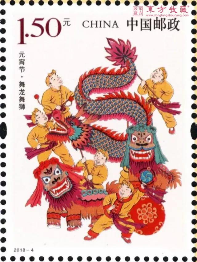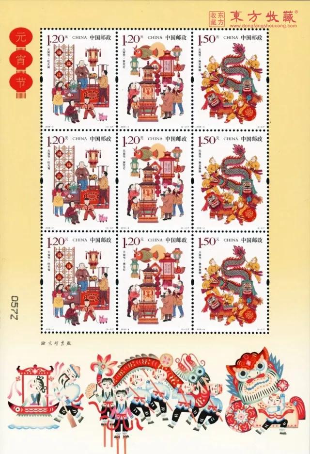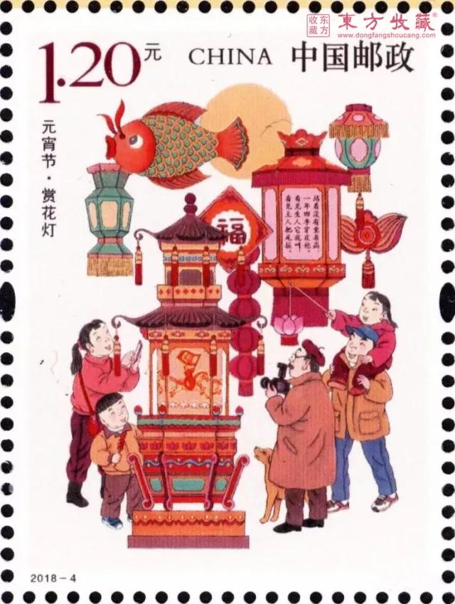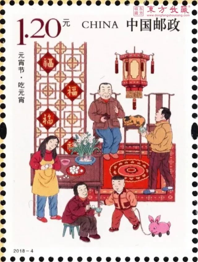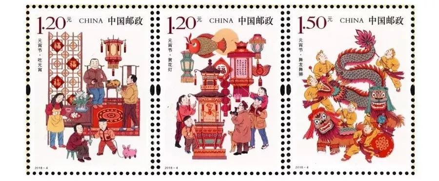 发行信息 邮票志号:2018-4 发行日期:2018.3.2 图序 图名 面值 (3-1)T 吃元宵 1.20元 (3-2)T 赏花灯 1.20元 (3-3)T 舞龙舞狮 1.50元 邮票规格:30×40毫米 齿孔度数:13.5度 整张枚数:版式一20枚、版式二9枚 整张规格:版式一150×240毫米、版式二124×180毫米 版别:影写版 防伪方式:防伪纸张、防伪油墨、异形齿孔、荧光喷码 设计者:李涵