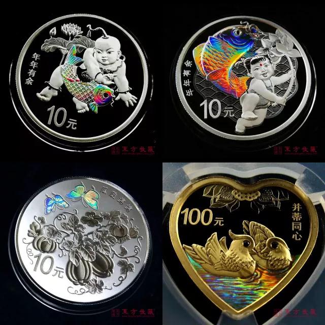 喜欢收藏金银币的藏友都知道,金银币因为珍贵的贵金属材质,发行量都不会太多,而且由于贵金属的特性,在金银币上也存在着非常多、普通纪念币和人民币所没有的绝美工艺,幻彩就是其中之一。 炫丽的幻彩工艺 “幻彩”工艺,学名应该叫“全息激光技术”或者“光学可变技术”,是通过在衍射物理学的基础上,进行数学分析并运用在贵金属上的工艺,呈现出新奇、特殊的光学效果。 将幻彩工艺应用到金银币上,不仅能够加强图案的设计感,让选定的区域颜色出现彩虹般的炫丽效果,而且也是非常有效的防伪手段,这种工艺的难度之高,几乎不能被伪造出来。 2000年观音纪念币 我国最早发行的幻彩金银币是2000年的1/10盎司观音纪念金币,虽然是由瑞士代铸的,但这枚幻彩币的出现,让我们第一次拥有了,与世界顶级铸币技术同步的纪念币品种,具有重大的意义。 2002年观音纪念币 此后,我国在2002年、2003年和2004年,再次分别发行了观音系列的其它幻彩纪念币,幻彩币的队伍壮大起来,同时也使得我国在幻彩工艺领域的技术得到不断发展。 2003年观音纪念币 观音系列幻彩币,作为名副其实的老精稀纪念币,同时也是极为珍贵的瑞士产、龙头币种,如今在金银币市场上,享有极高的地位和市场价值,属于难得一见的收藏珍品。 2004年观音纪念币 2004年,我国完全自主知识产权的第一枚幻彩金银币诞生了,就是人民代表大会成立五十周年金银纪念币。这套金银币的成功发行,也证明了我国贵金属纪念币的工艺成就。 人民代表大会成立五十周年银币 其中金币为1/2盎司,发行量仅有5千枚;银币为1盎司,发行量5万枚。发行之初,不仅引得整个收藏市场的热潮,同年还获得了“最受群众喜爱的2004年中国贵金属纪念币”的美誉。 正面图案是人民大会堂的正景,背面则运用幻彩工艺,完美贴合人民大会堂的天穹灯饰图案,呈现出极为炫丽的艺术设计风格,同时也把人民大会堂庄严隆重、辉煌璀璨的气质表现得淋漓尽致。 人大五十周年金银币在当今市场上的收藏价值非常高,但相对于朴素、简洁的币面图案,幻彩的设计就如同画龙点睛一般,让这枚金银币瞬间提高了层次、身价倍增。 历年发行的幻彩金银币 虽然幻彩工艺已经非常成熟,但在贵金属币的发行史上,应用的也不多。一方面是因为难度大、造价高,一方面应该是幻彩的运用不太容易,但有一点,凡是发行的幻彩币,都极为华丽精致、令人叹为观止。 峨眉山5盎司金币 2014年和2015年,我国接连发行了两套佛教圣地系列金银币,其中峨眉山5盎司金币和九华山1公斤银币,分别运用幻彩工艺,着重表现菩萨的佛光,令人惊艳。 九华山1公斤银币 从2015年开始发行的“吉祥文化”系列金银币,其中也有很多品种,像2015年瓜瓞绵绵30克银币、2016年并蒂同心30克银币等,局部也应用了幻彩工艺,精致巧妙的设置,为这几枚金银币赋予了灵动的气息。 吉祥文化系列金银币 2017年发行的熊猫35周年5克金币,是熊猫币大家族里,第一枚应用幻彩工艺的纪念币,炫丽的色彩和变化的年份相呼应,极为精致,也使其成为熊猫币里最漂亮的品种之一。 熊猫35周年纪念币