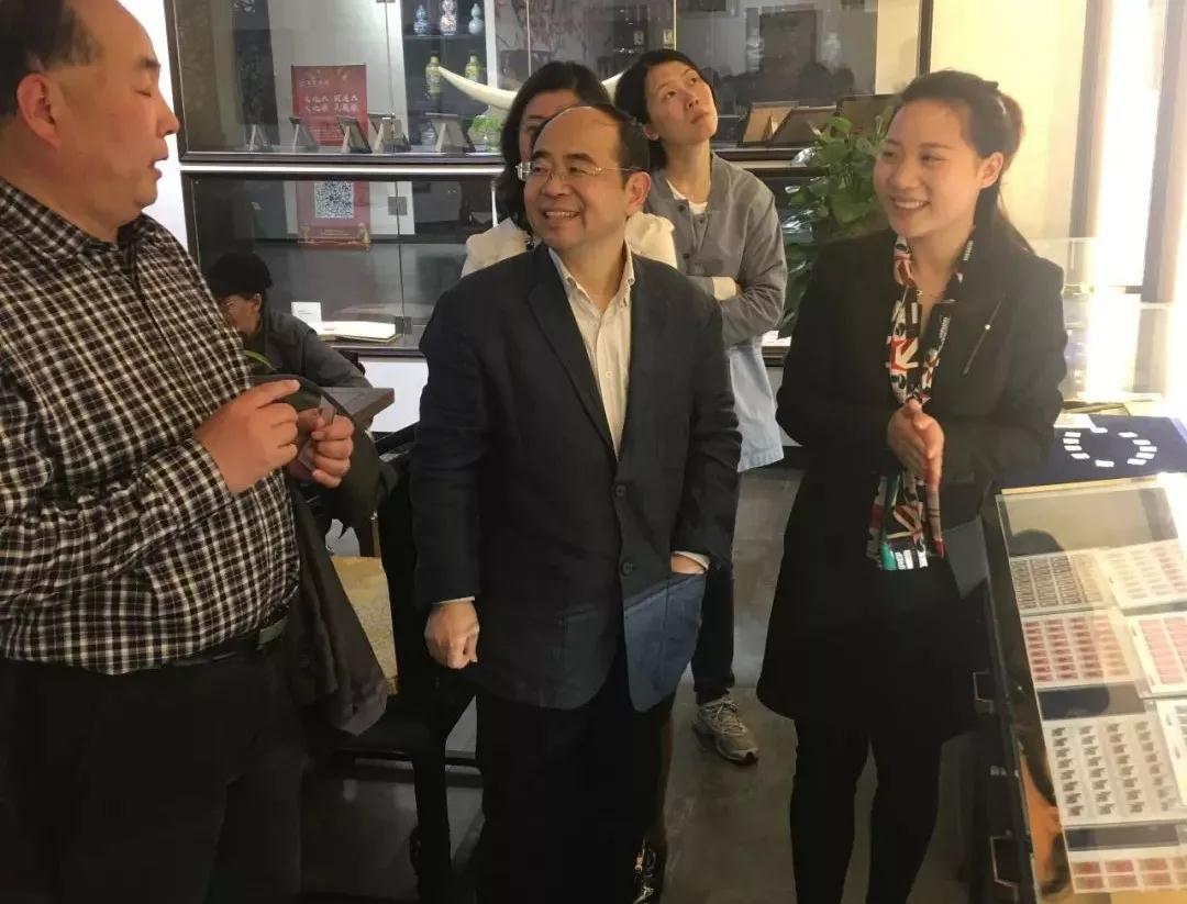 4月20日,上海市长宁区华阳街道文化艺术中心领导莅临东方收藏视察工作,董事长陶勇陪同领导一行人参观展厅,交谈甚欢!
