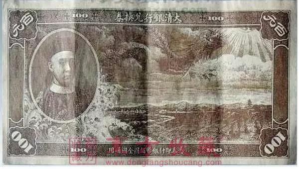 1911年10月辛亥革命爆发,清朝覆亡,这套正在筹划中的大清银行兑换券随即夭折。仅有数枚样票流入社会,且因其设计大方,印制精美,达到了当时世界纸币设计、雕刻、印制的最高水平,成为中国近代纸币中极难得见的珍品。偶尔在拍卖会上出现,则是数百万的天价。