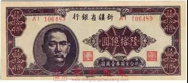 其中面额最大的当属“陸拾億圆”纸币,实际价值多少呢?上写“折合金圆券1万元”。金圆券1万元值多少呢?时值77粒大米。这也导致后期人民用这些钱币直接论斤购买货物。