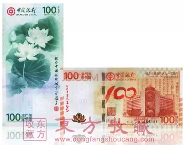 中国银行百年澳门荷花整版钞,面值100元,共三十连体,是迄今为止藏品市场唯一的水墨题材纪念钞票。