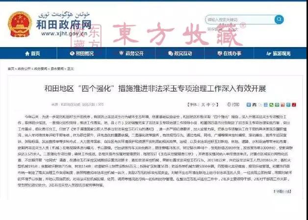 和田地委、行署连续下发文件,对私采乱挖和田玉进行整治打击,比以往更加严格,打击的力度更大,堪称史上最严禁采令。这次禁令主要是针对长期肆意开采,破坏了原有的生态环境,需要建立更有效、更有条理的制度。
