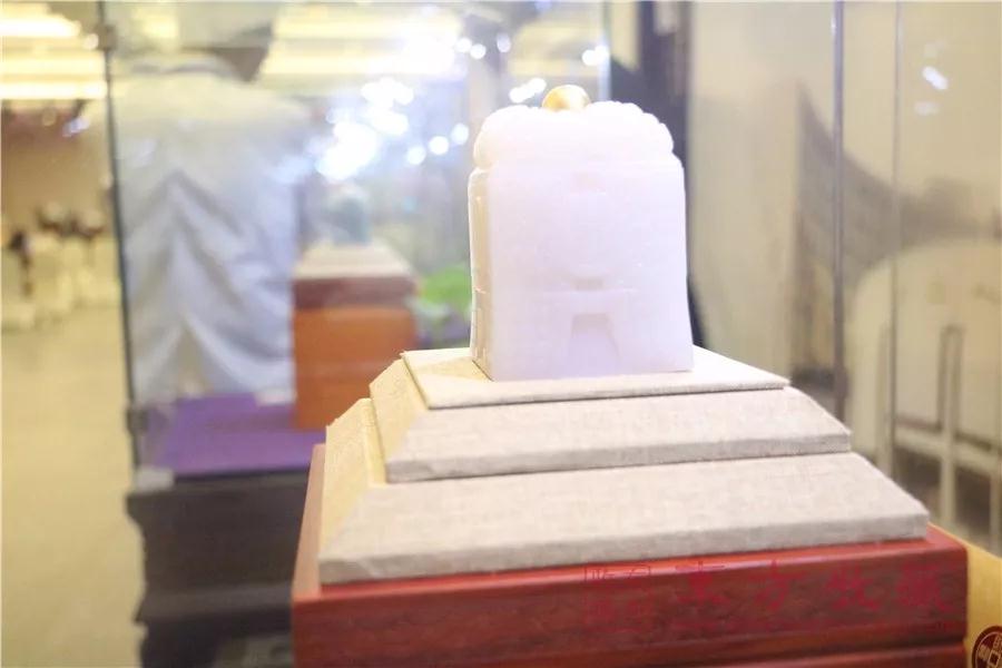 随后,模特走向舞台,手中托举着圆润丰满的《财玺·财富瑰宝》,让藏友近距离欣赏玉玺的魅力,晶莹润泽的和田玉玉玺瞬间吸引了所有人目光。