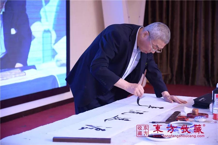 通过互动环节,送出所有好礼之后,主持人再次隆重请出唐愷先生现场挥毫泼墨,墨香环绕,各位藏友们送出最热烈的掌声。