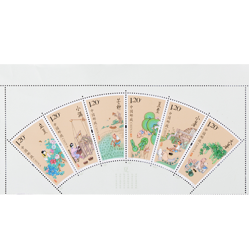 中国邮政定于2016年5月5日发行《二十四节气(二)》特种邮票。5月5日是二十四节气中的立夏,这套邮票一套为6枚,内容分别为立夏、小满、芒种、夏至、小暑、大暑6个节气,面值7.20元、这套系列票依据一年四季概念。分四组发行,每组6枚。包含立春、雨水、惊蛰、春分、清明、谷雨六个节气的《二十四节气(一)》特种邮票,已于去年发行。