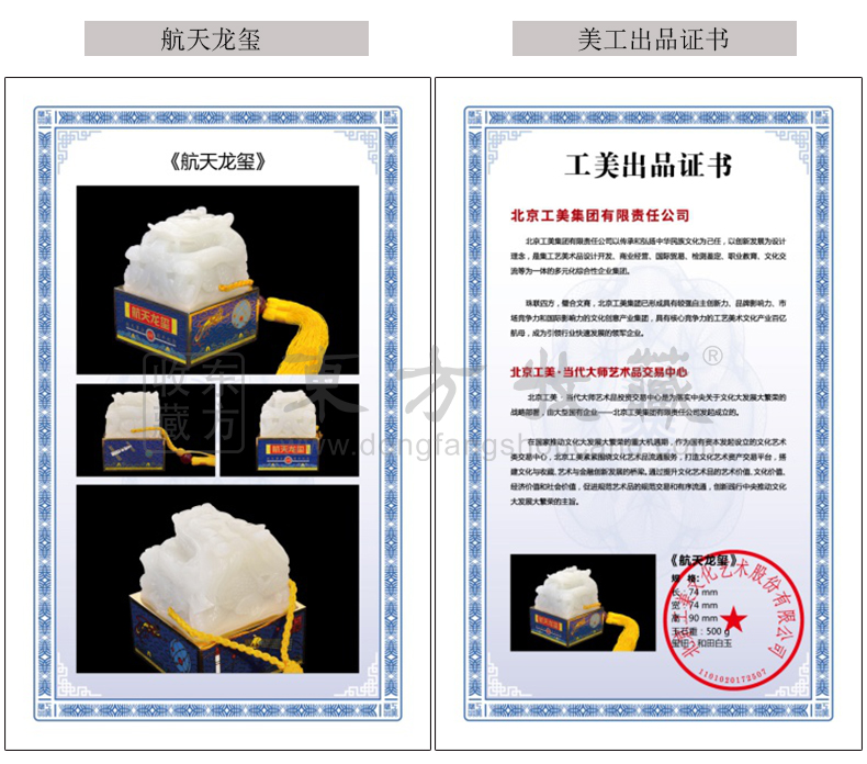 北京工美集团 玉玺 航天龙玺 白玉版 航天玉玺 纪念中国航天事业60周年 和田玉