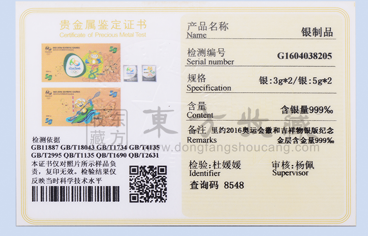 东方收藏承诺遵守商业道德,诚信为本、依法经营,接受会员监督。东方收藏所有藏品均有相关机构出具的证书,如果您发现虚假藏品,即可假一赔十。