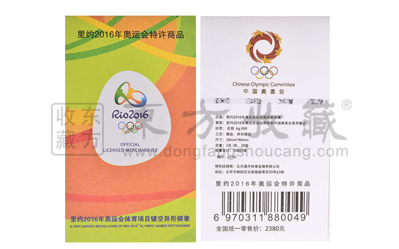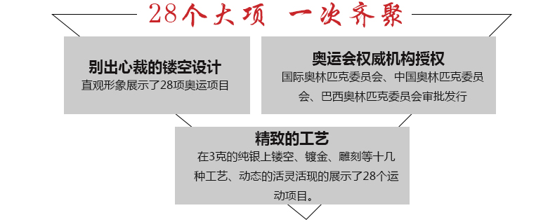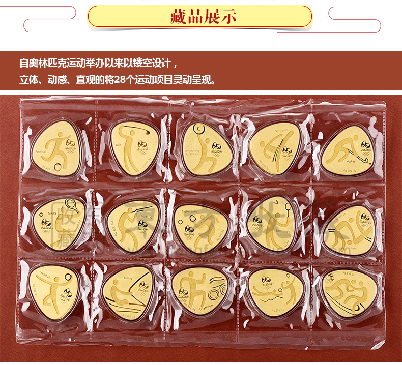 里约2016奥运会体育项目镂空异形银章 里约奥运会官方特许商品