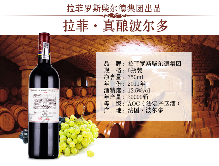 拉菲.珍酿波尔多(6瓶装) 拉菲葡萄酒