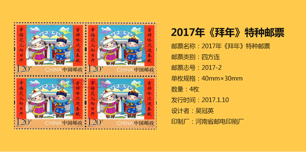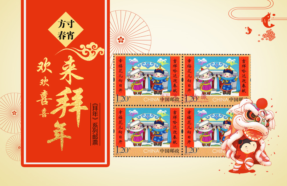 2017-2《拜年三》特种邮票 四方连 邮费自理
