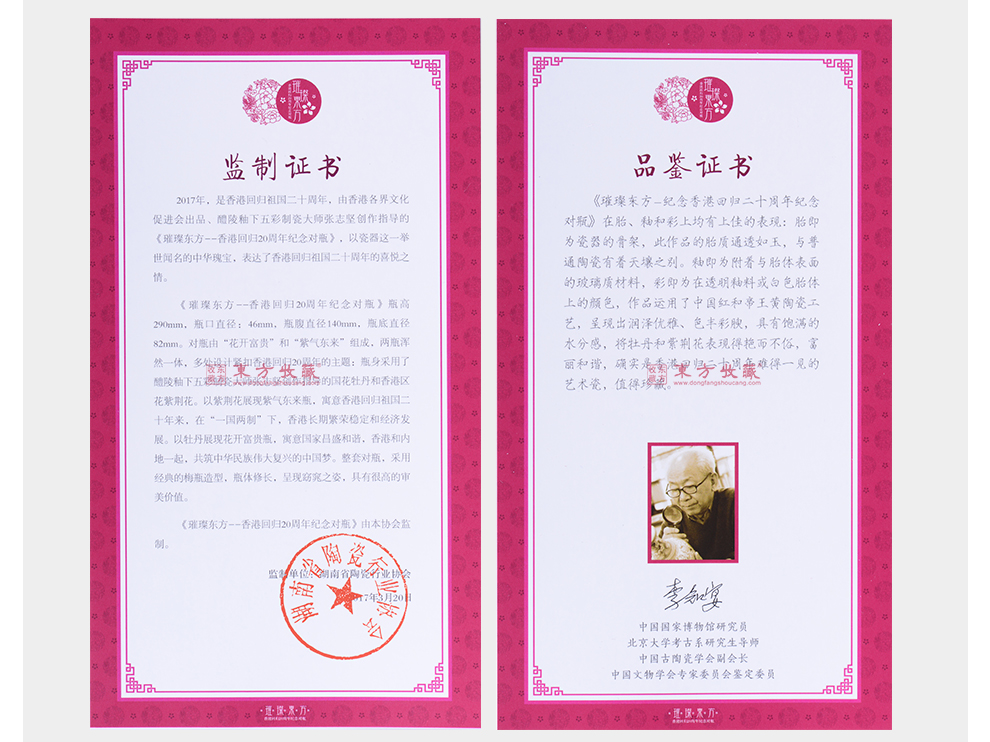 东方收藏承诺遵守商业道德,诚信为本、依法经营,接受会员监督。东方收藏所有藏品均有相关机构出具的证书,如果您发现虚假藏品,即可假一赔十。