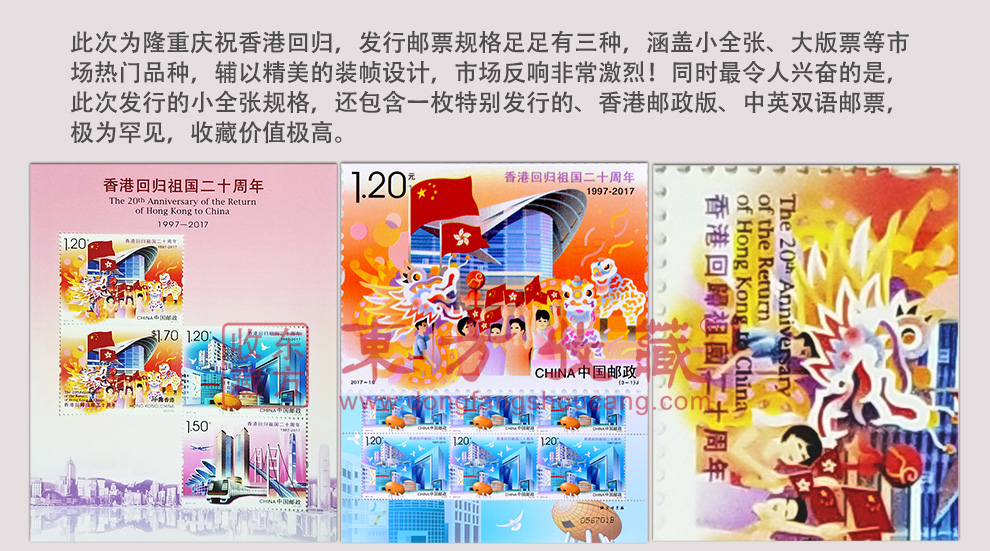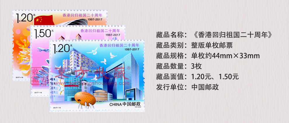 《香港回归祖国二十周年》纪念邮票 一套3枚 邮费自理!
