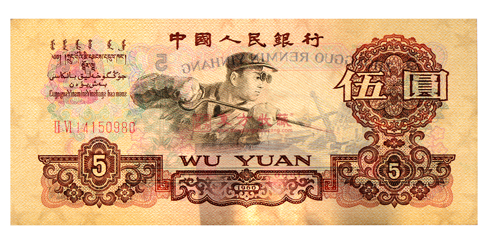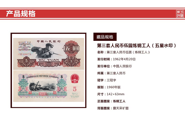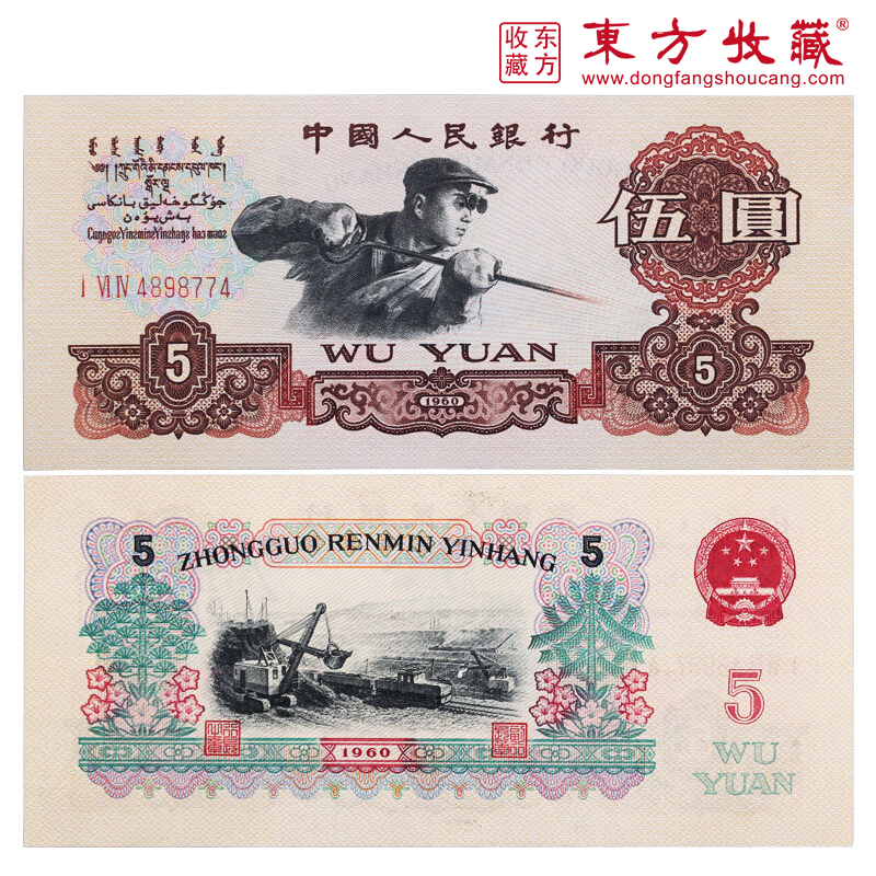 第三套人民币 1960年5元炼钢工人 五星水印 单张 全品相