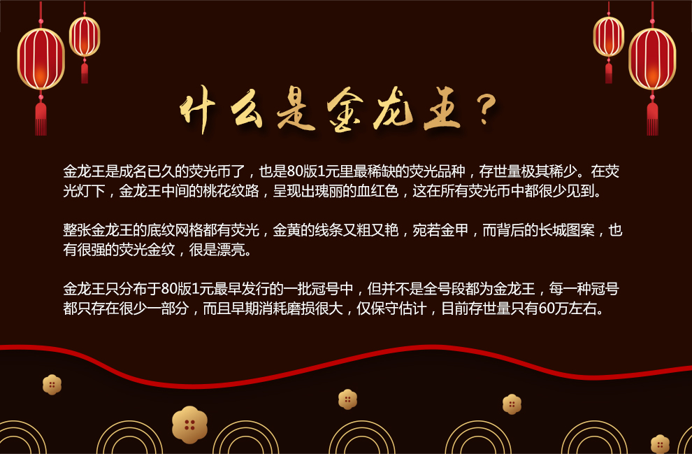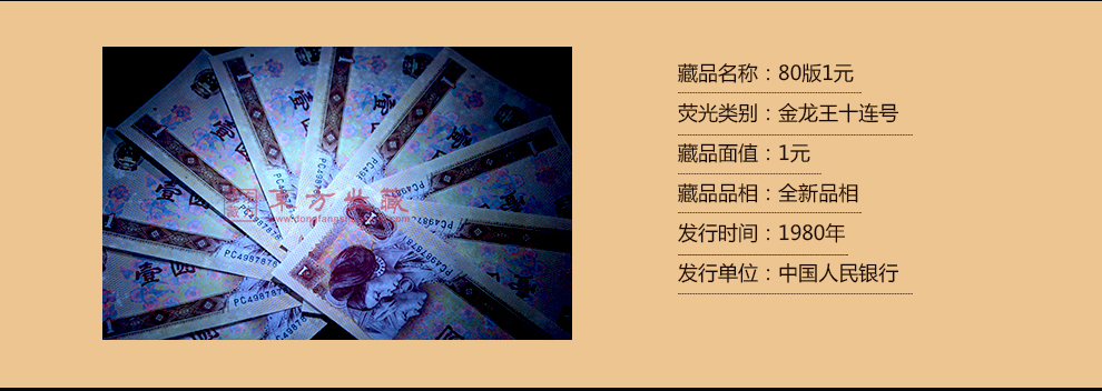 第四套人民币 1980年1元荧光版金龙王 十连号 全新品相