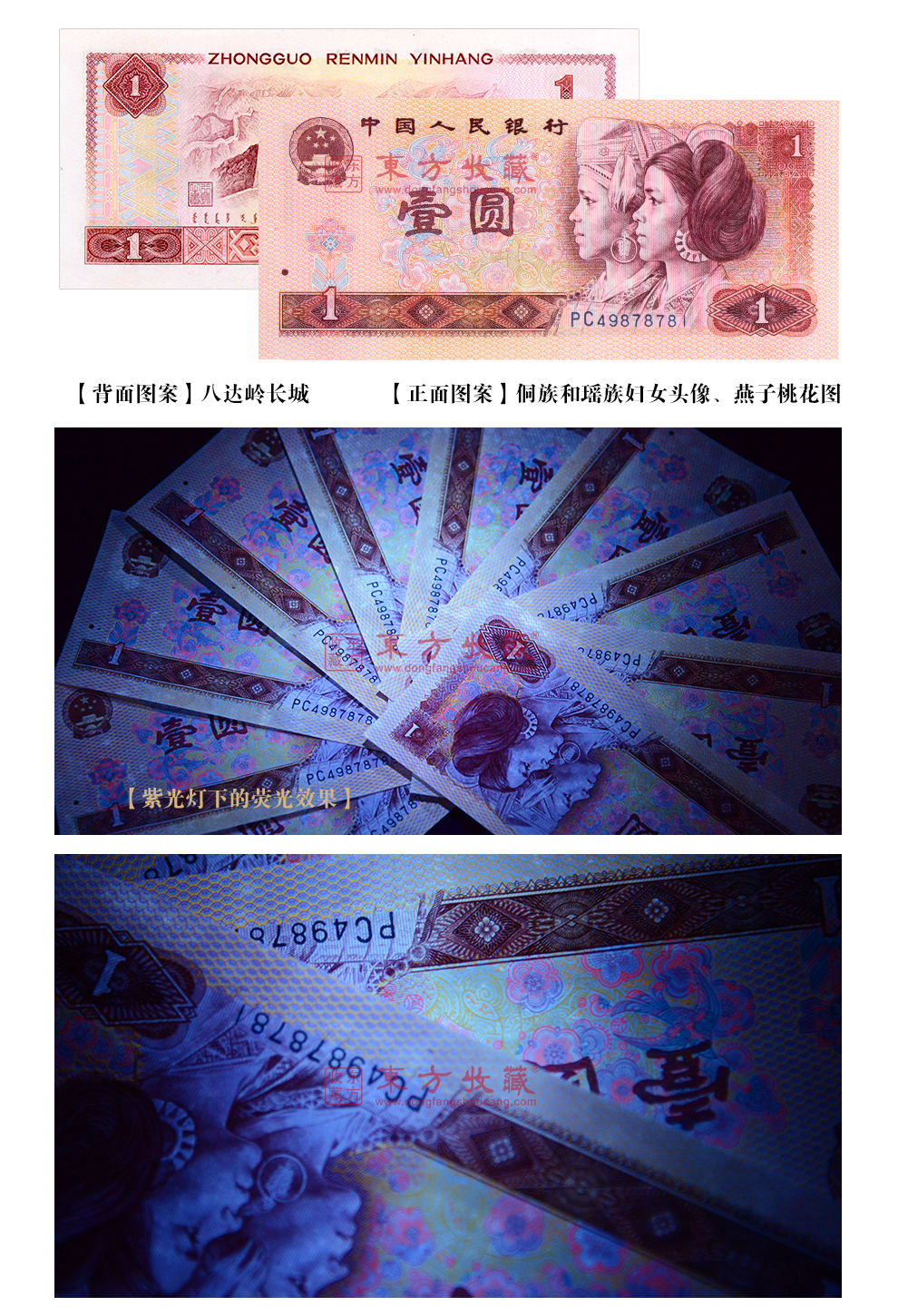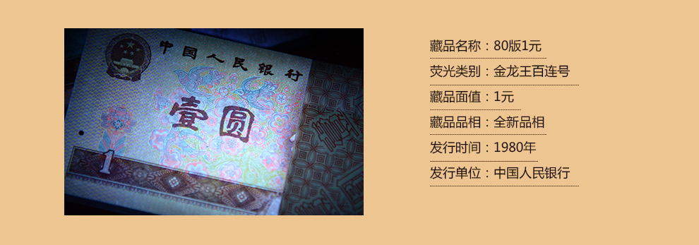 第四套人民币 1980年1元荧光版金龙王 百连号 全新品相