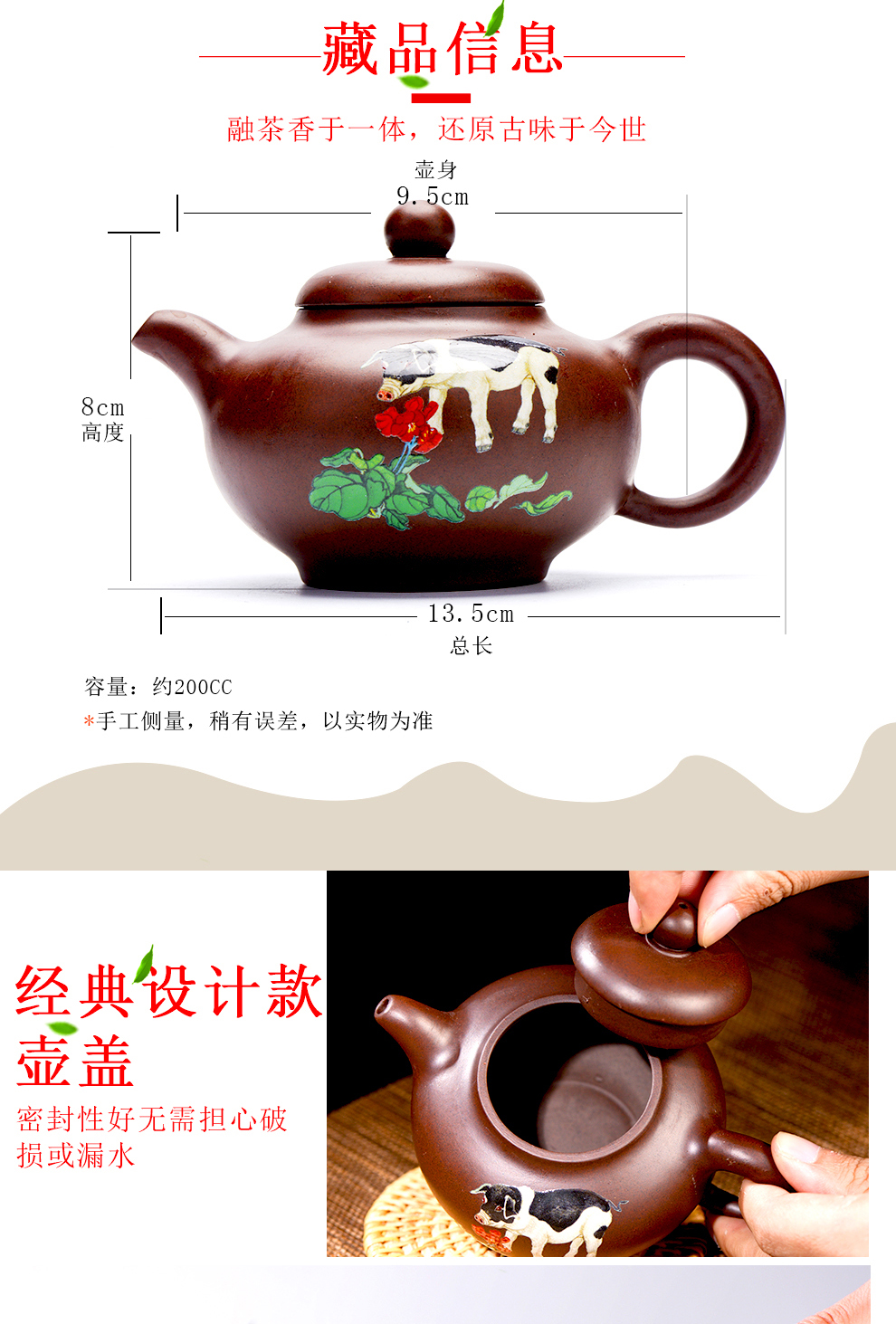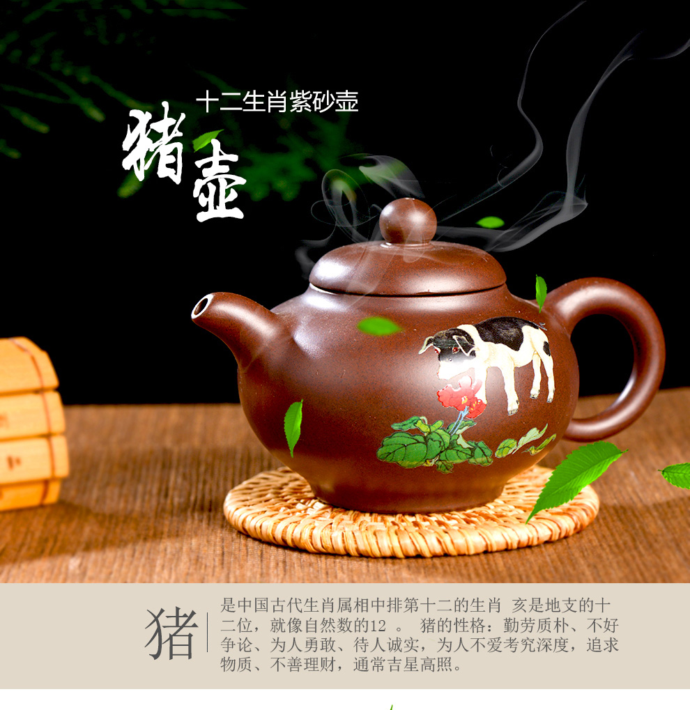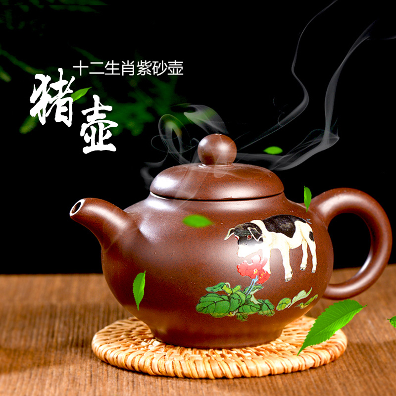 中国十二生肖彩绘紫砂壶 猪壶 紫砂茶具 喝茶