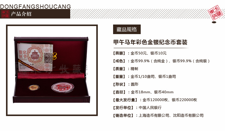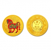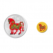2014马年生肖金银纪念币 圆形彩色金银纪念币 1金1银