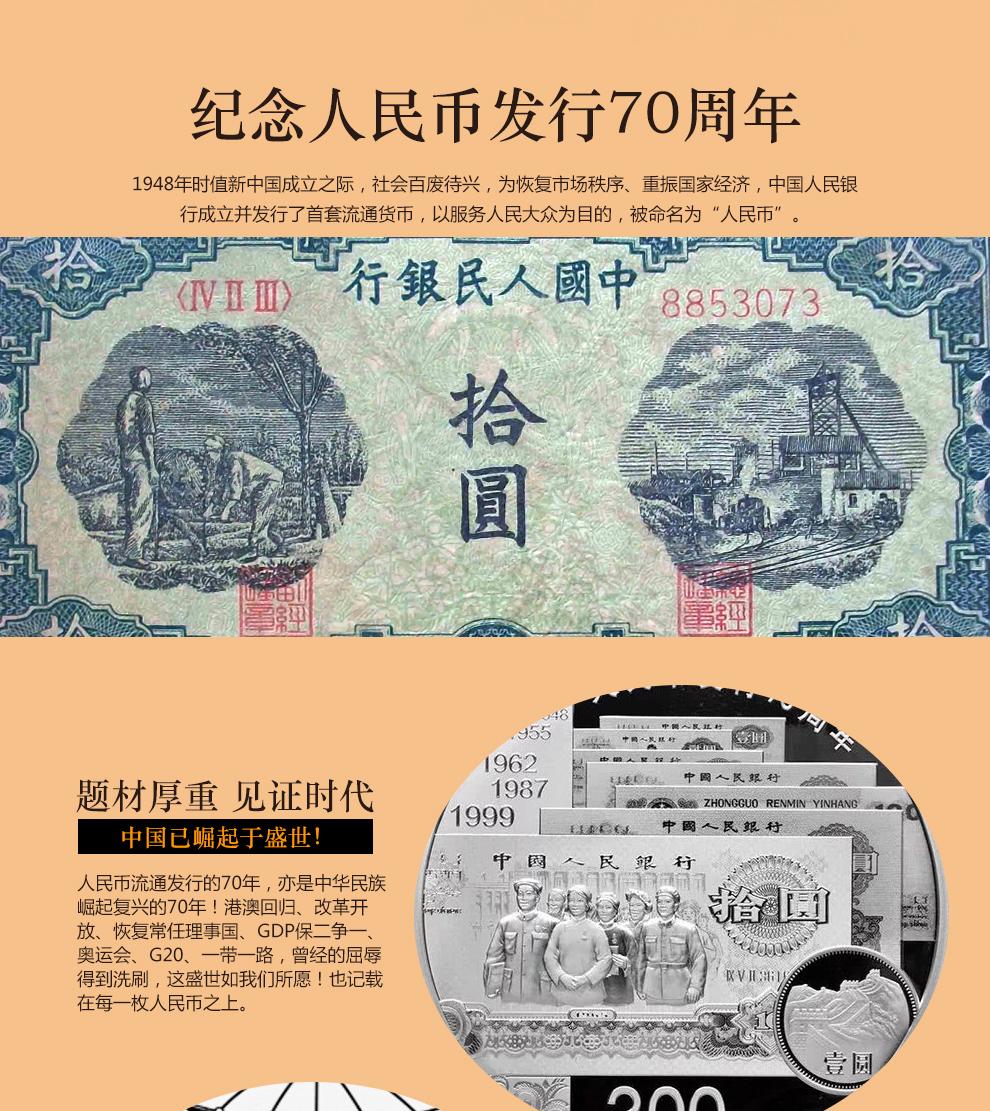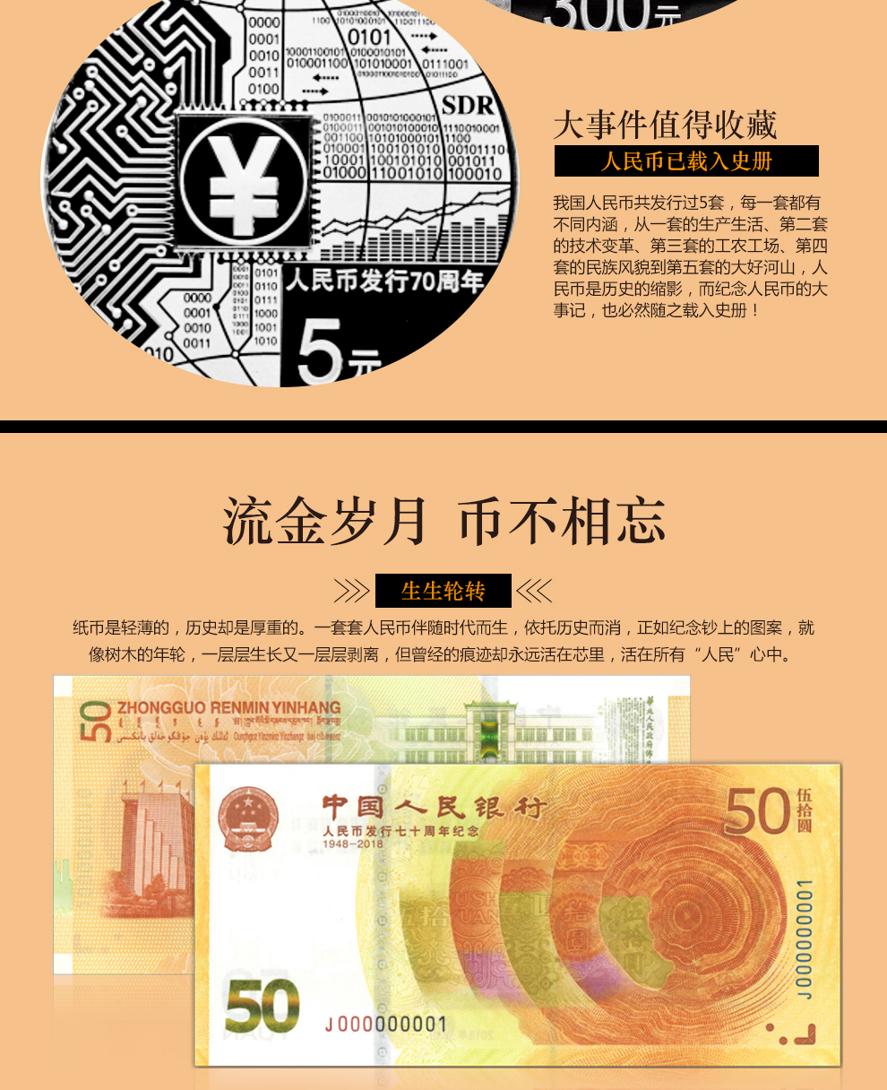 中华人民共和国成立70周年 人民币发行70周年纪念钞 改革开放纪念币