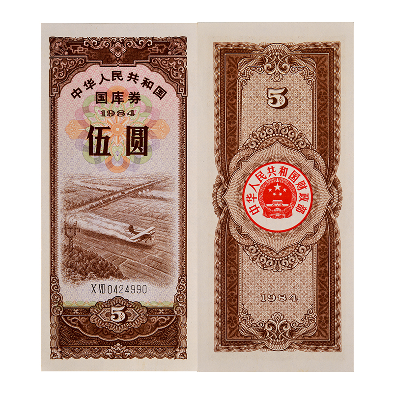 中国国库券1984年5元 单张