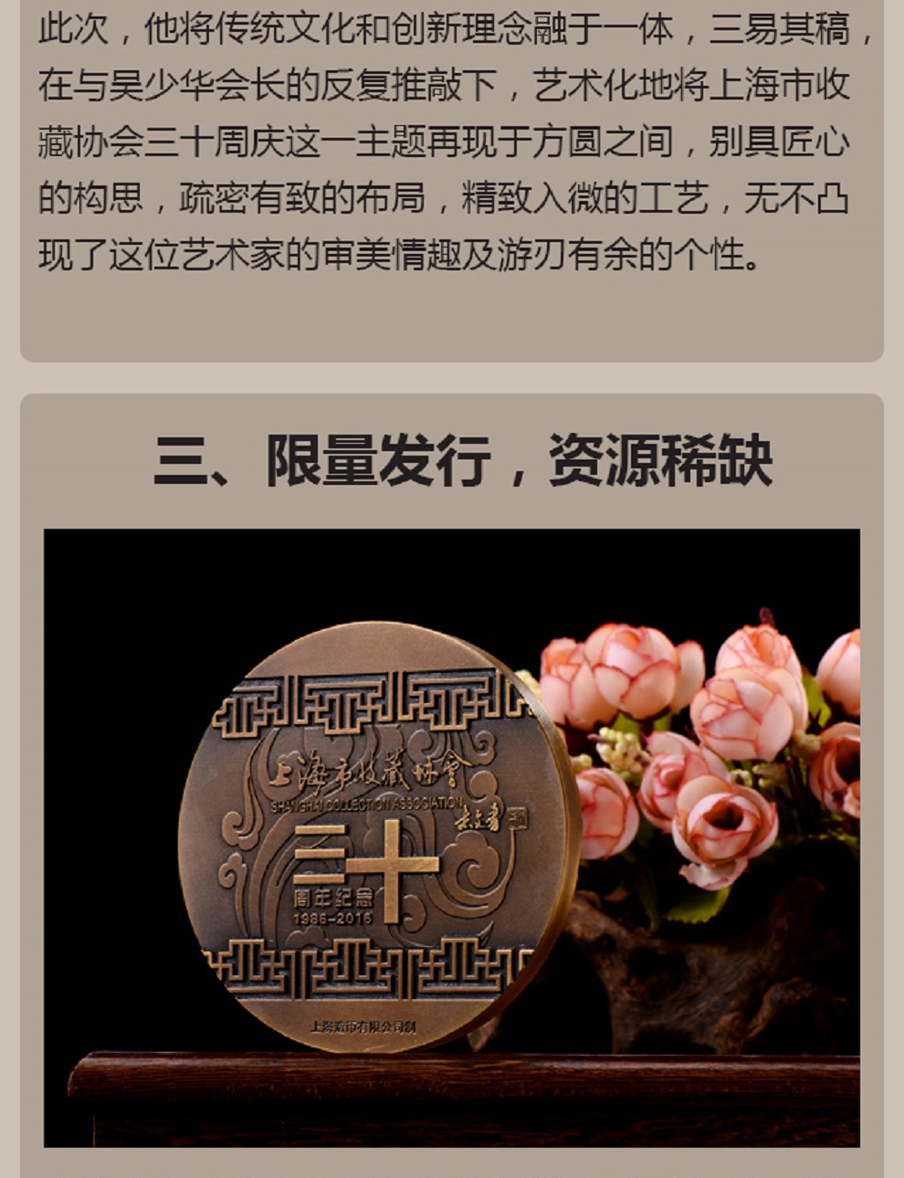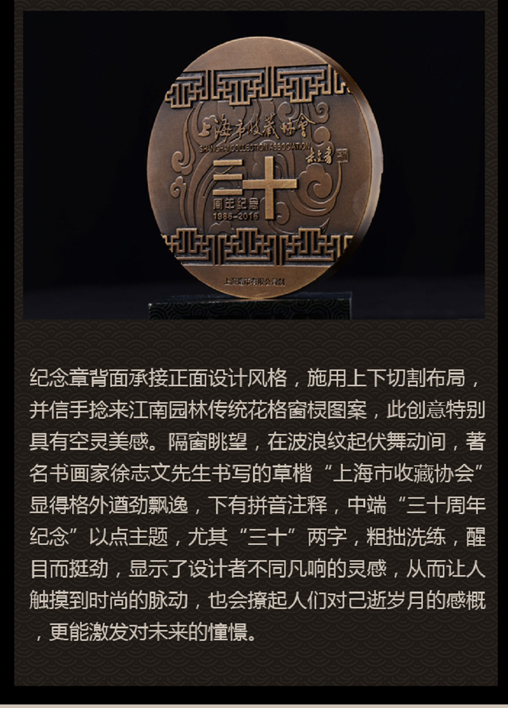 上海市收藏协会30周年纪念品 收藏协会30周年纪念铜章