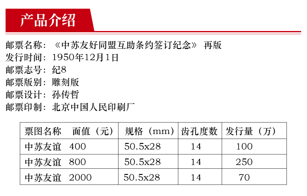 老纪特邮票 1950年 纪8 中苏友好同盟互助条约签订纪念 邮票 再版
