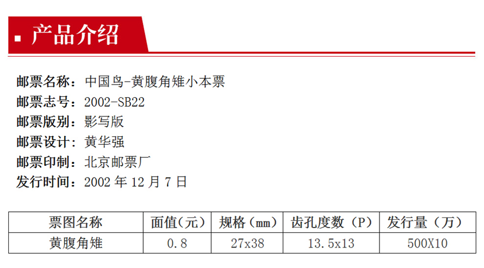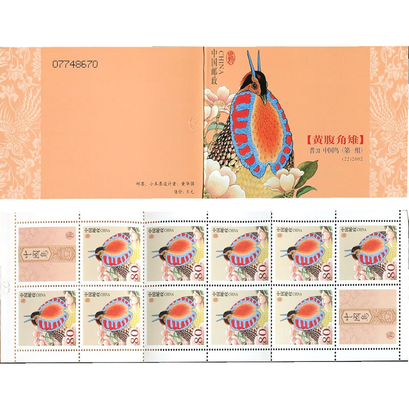 2002-22 SB22 普31 中国鸟(第一组)黄腹角雉 邮票 小本票