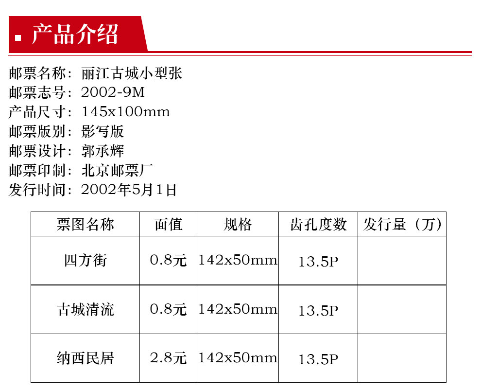 2002-9M 丽江古城邮票 小型张