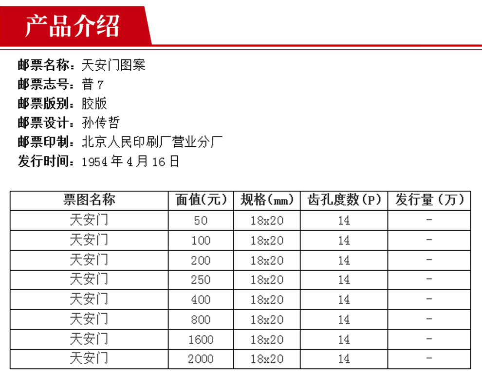 普通邮票 普7 天安门图案 第六版 1954年邮票
