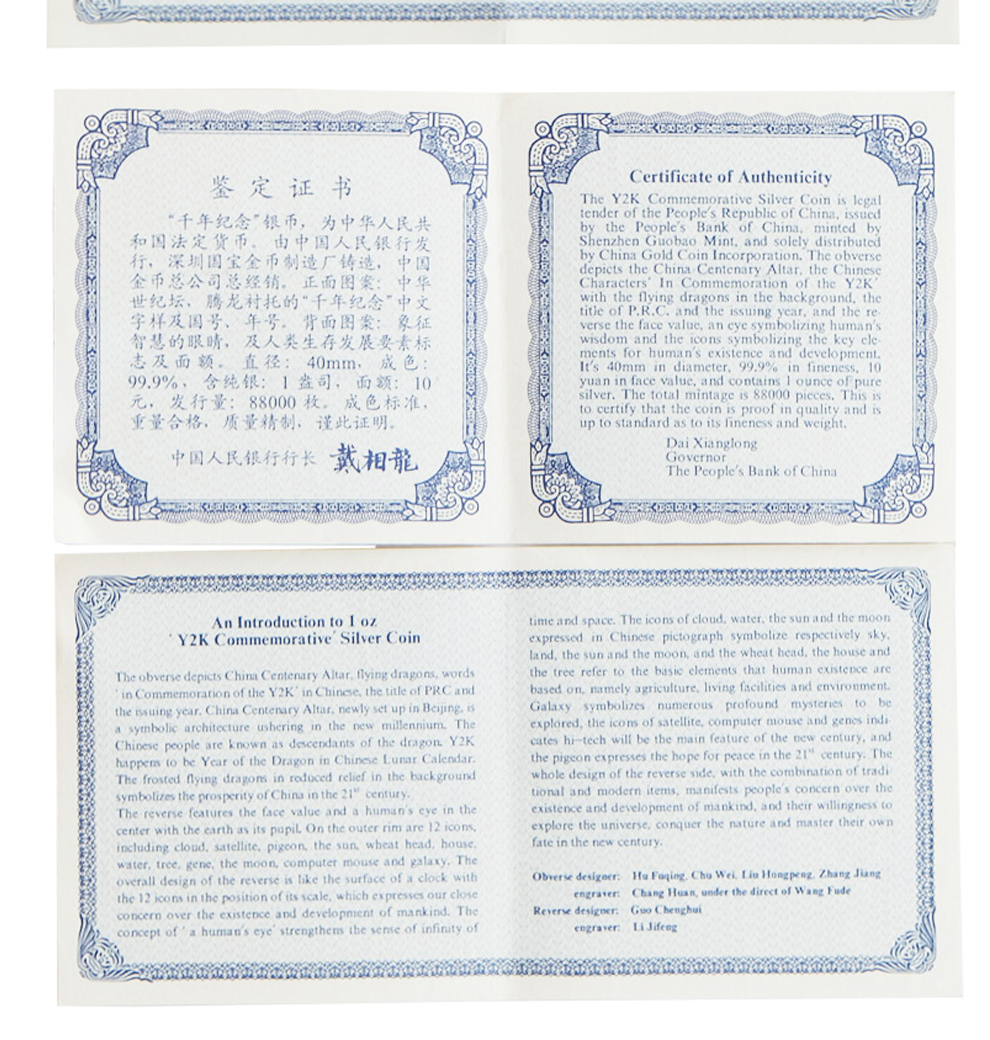 2000年千年纪念银币 千禧年纪念币 1盎司银币