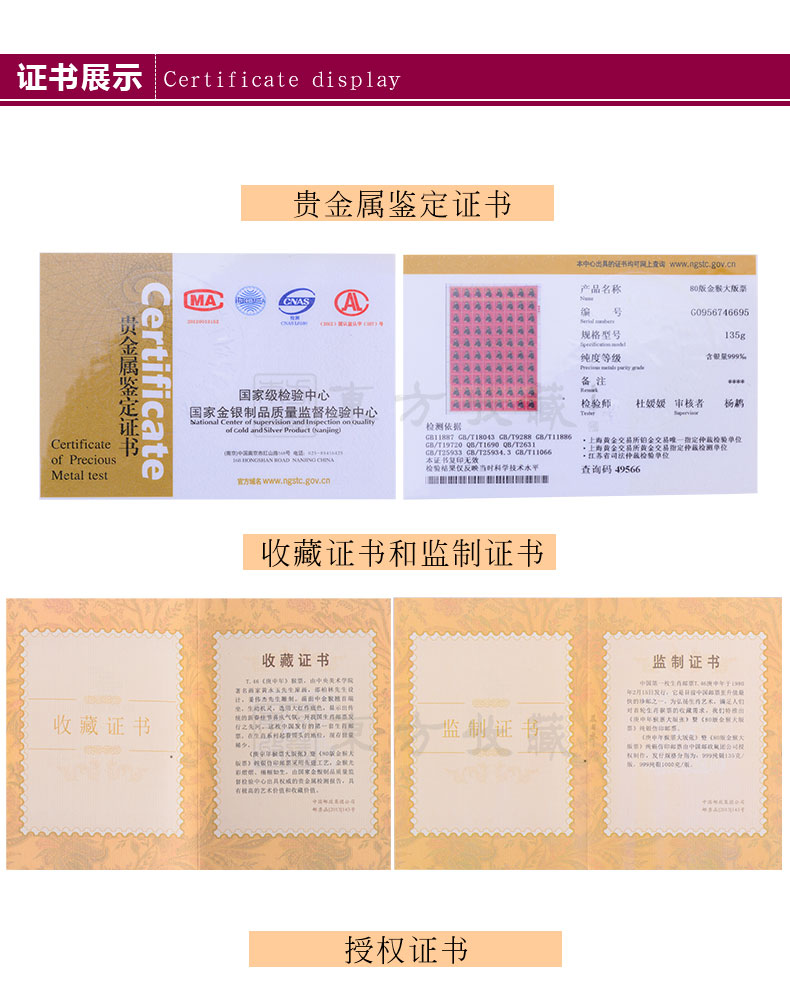 东方收藏承诺遵守商业道德,诚信为本、依法经营,接受会员监督。东方收藏所有藏品均有相关机构出具的证书,如果您发现虚假藏品,即可假一赔十。