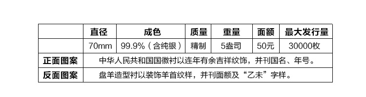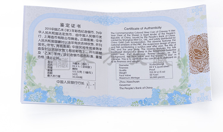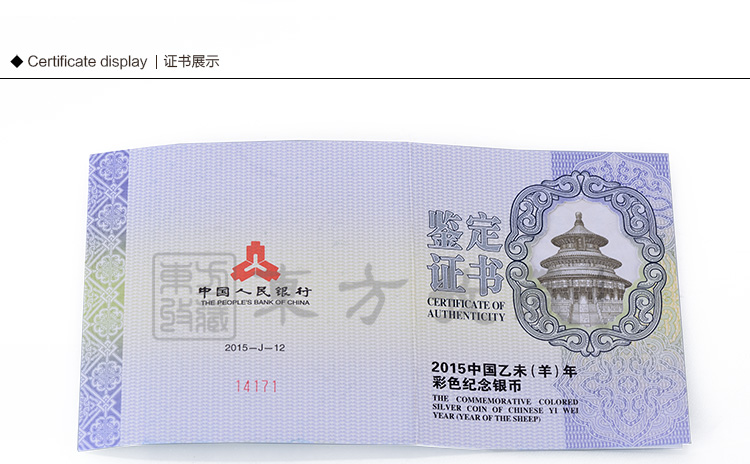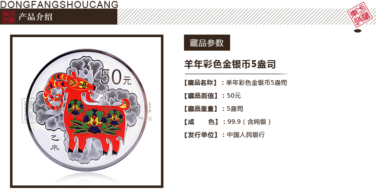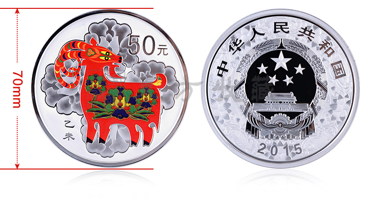 2015羊年生肖金银纪念币 圆形彩色5盎司银币